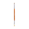 Como usar: Para o delineado, molhe o lado com cerdas anguladas do pincel no produto. Comece na parte externa do olho e deslize o pincel ao longo da linha dos cílios superiores ou inferiores. Aplique o delineador em pequenos traços para criar uma linha contínua e precisa. Ajuste a pressão do pincel de acordo com a espessura desejada da linha. Para a sombra, utilize o lado com cerdas macias e arredondadas do pincel. Pressione o pincel suavemente na sombra para pegar o produto. Aplique a sombra nas pálpebras com movimentos suaves e leves. Esfume com movimentos circulares ou de vai e vem para uma transição suave.